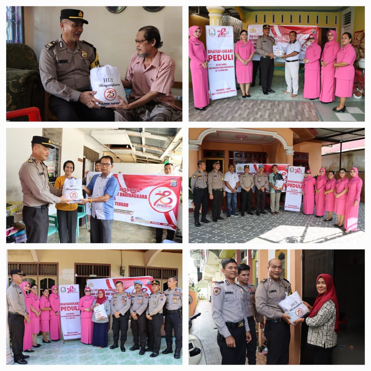 “Kami ingin berbagi kebahagiaan dalam menyambut HUT Bhayangkara ke 78 kepada masyarakat dan keluarga besar Polri terutama Purnawirawan Polri dan Warakawuri maupun anggota Polri yang sedang sakit. Untuk saat ini ada 49 Purnawirawan Polri dan 27 Warakawuri yang ada diwilayah hukum Polres Tapanuli Tengah,” ungkapnya.