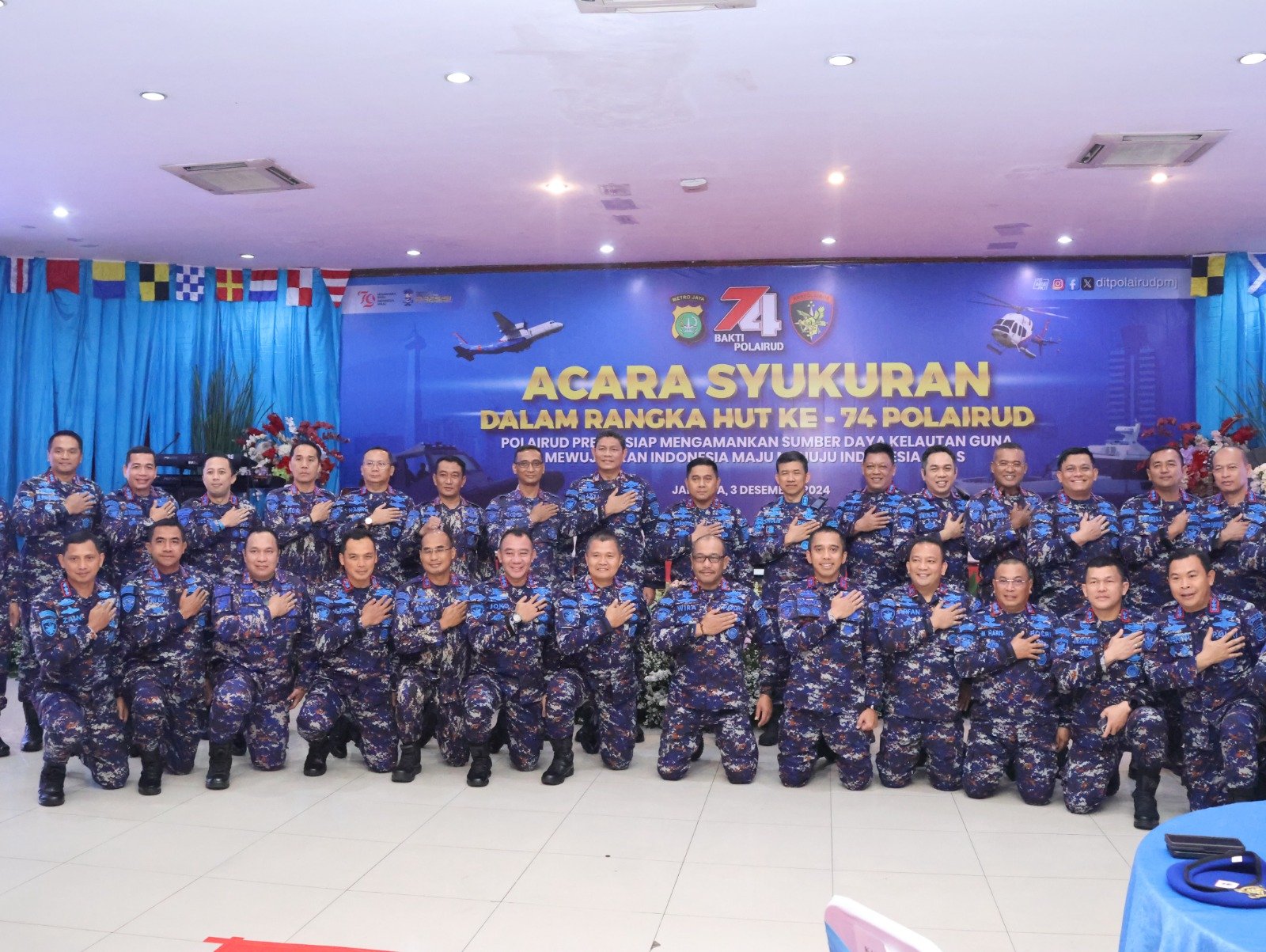 Jakarta – Kapolda Metro Jaya Irjen Pol Karyoto menghadiri acara syukuran Hari Ulang Tahun (HUT) ke-74 Polairud yang digelar di Gedung Balai Pertemuan Metro Jaya, Selasa (3/12/2024) pagi.