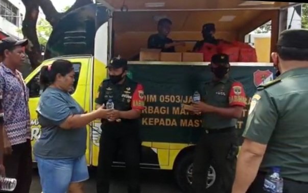 Penyaluran nasi kotak secara gratis dari Kodim 0503/JB di bagikan langsung kepada warga oleh jajaran anggota Koramil 02/TB bersama Mitra Jaya di Jl. Duri Selatan Raya Rt.005 Rw.02 Kel. Duri Selatan Kec.Tambora Jakarta barat.kamis (18/8)