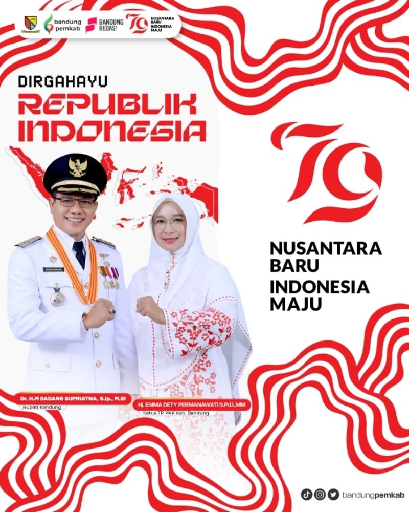 “Pada momen Kemerdekaan RI ke-79 ini, saya nengajak seluruh masyarakat Kabupaten Bandung, mari kita bersama-sama berkontribusi mengisi kemerdekaan dengan mewujudkan Kabupaten Bandung yang lebih maju dan siap menyongsong Indonesia Emas 2045,” ujar Bupati Dadang Supriatna, Jum’at (16/8/2024)