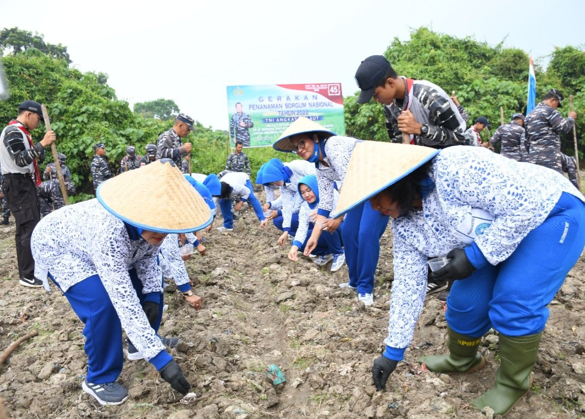 “Penanaman benih jagung dan Sorgum dilahan ketahanan pangan Lanal TBA ini diharapkan dapat menghasilkan sesuatu yang berguna bagi masyarakat luas, untuk mendukung program pemerintah dalam pemenuhan ekonomi, dengan membuka lahan di seluruh satuan kerja”, tambahnya.