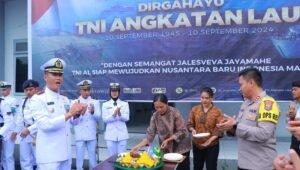 SIBOLGA – Kapolres Sibolga AKBP Achmad Fauzy, SH, SIK, MIK, bersama Pejabat Utama Polres Sibolga, Sambangi Mako Lanal Sibolga dalam Rangka memberikan Surprise dan berikan Kue Ulang Tahun serta Ucapan Selamat Hari Ulang Tahun (HUT) TNI AL Ke-79 Tahun 2024 bertempat di Jln. S. Parman Kota Sibolga. Selasa (10/09/2024) pukul 07.30 Wib.