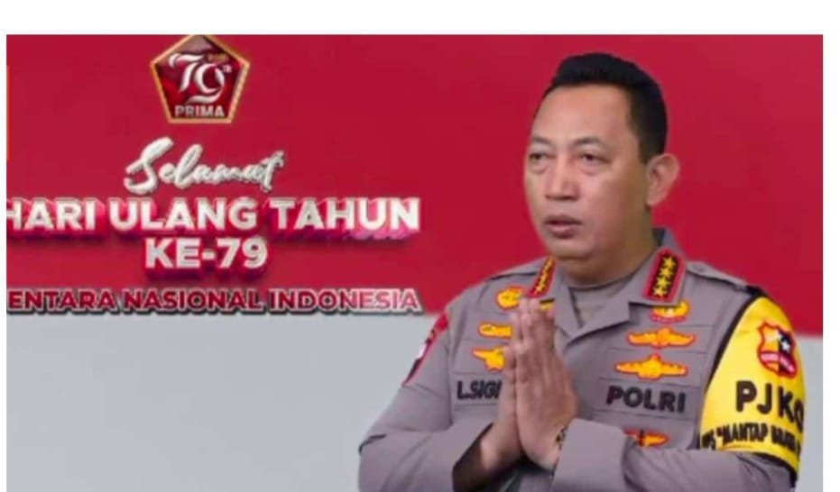 “Saya mengucapkan Selamat Hari Ulang Tahun ke-79 Tentara Nasional Indonesia.. TNI modern bersama rakyat, siap mengawal suksesi kepemimpinan nasional untuk Indonesia Maju. TNI Prima. Salam Presisi!!” ungkap Jenderal Sigit.