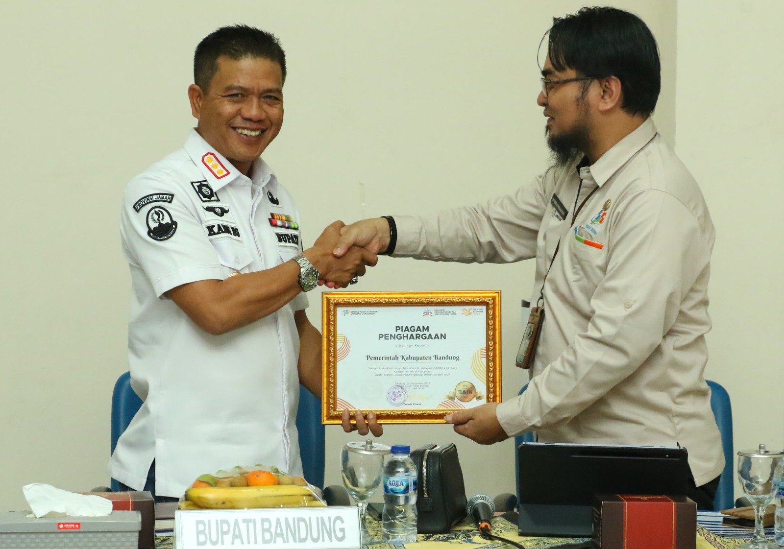 Penghargaan IPS tersebut diberikan oleh Kepala BPS Jawa Barat Darwis Sitorus, melalui Kepala BPS Kabupaten Bandung Bambang Pamungkas kepada Bupati Bandung, di Kantor BPS Kabupaten Bandung, Rabu (15/1/2025).