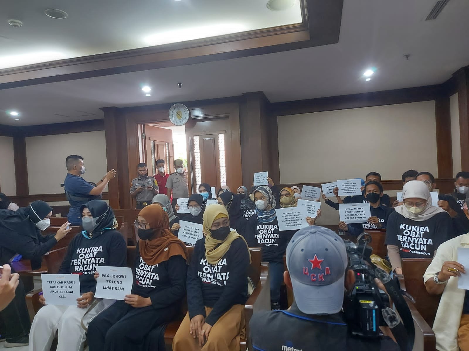 Tim Advokasi Untuk Kemanusian bersama keluarga korban gagal ginjal akut progresif Atipikal (GGAPA) menghadiri sidang gugatan perwakilan kelompok atau class action dengan perkara No 771/Pdt.G/2022/PN Jkt.Pst. Sekitar 21 keluarga korban hadir di PN Jakarta Pusat sejak pukul 09.30 WIB.