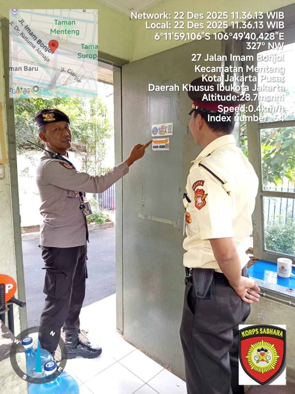 Jakarta Pusat – Dalam rangka meningkatkan kualitas pelayanan kepolisian yang cepat, responsif, dan berbasis teknologi, Kanit Samapta Polsek Metro Menteng AKP Samsul Bahri melaksanakan kegiatan sosialisasi Barcode Sahabat Patroli Polisi dengan menempelkan stiker barcode di Jalan Imam Bonjol No. 27, Menteng, Jakarta Pusat. Senin (22/12/2025)