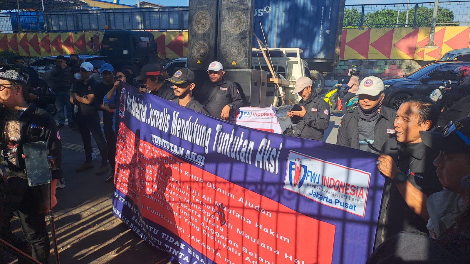 Para peserta aksi menegaskan pentingnya perlindungan terhadap kebebasan pers dan keselamatan wartawan dalam menjalankan tugas jurnalistik.