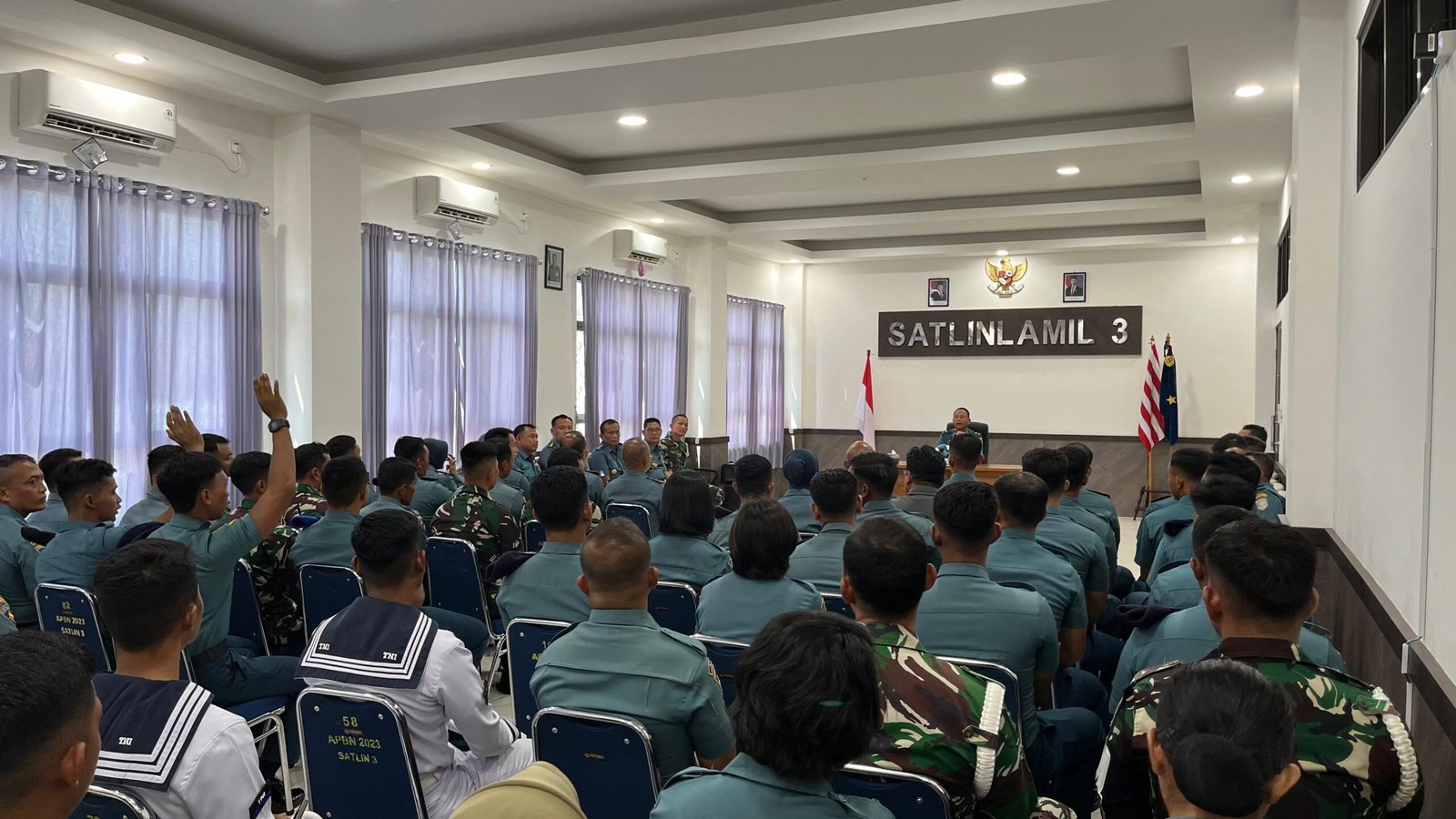 refubliknews.com, – TNI AL, Makassar,- Ditengah-tengah kegiatan Audit Kinerja Kolinlamil di Mako Satlinlamil 3, Inspektur Kolinlamil (Irkolinlamil) Laksamana Pertama TNI Kunto Tjahjono, S.E., M.Han., M.Tr. Opsla., CRMP., memberikan pengarahan kepada Prajurit Satlinlamil 3 dan Prajurit Eks KRI Teluk Hading-538, bertempat di Ruang Rapat Mako Satlinlamil 3, Kamis (31/10/2024).