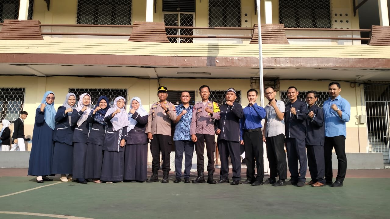 Kepala Sekolah SMK PGRI 35, Ibu Rina Santoso, mengapresiasi kehadiran dan penyuluhan yang diberikan oleh AKP Wiyanto dan Bripka Muhairi.