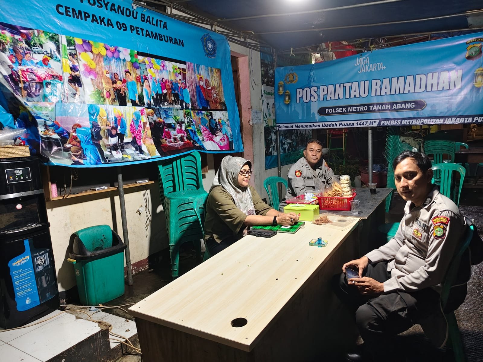 Jakarta Pusat — Personel Polsek Metro Tanah Abang melaksanakan kegiatan pelayanan dan pengamanan masyarakat melalui Pos Pantau Ramadhan yang berada di RW 09 LAN, Kelurahan Petamburan, Kecamatan Tanah Abang, Jakarta Pusat, pada Minggu malam (8/3/2026).