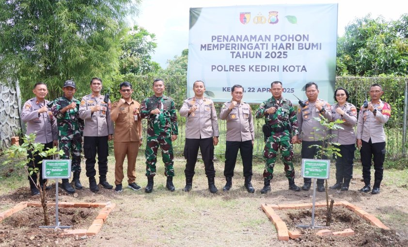 refubliknews.com,- Kediri Kota – Sebagai upaya mendukung pelestarian lingkungan serta menjawab tantangan perubahan iklim, Kapolres Kediri Kota AKBP Bramastyo Priaji, S.H., S.I.K., M.Si. bersama Dandim 0809 Kediri Letkol Inf. Ragil Jaka Utama, S.Hub, Int., M.H. melakukan aksi tanam Pohon di Koramil Grogol dan Polsek Grogol dalam rangka memperingati hari Bumi Sedunia, Selasa (22/4/2025).