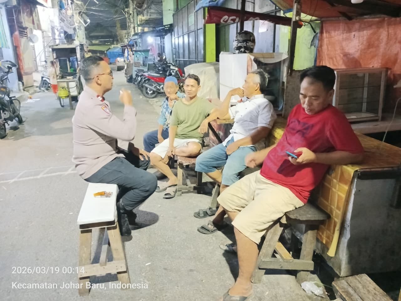 Kegiatan tersebut dilaksanakan pada Kamis (19/3/2026) pukul 00.14 WIB di area pemukiman warga Jalan Rawa Selatan V, RT 04/RW 04, Kelurahan Kampung Rawa, Kecamatan Johar Baru, Jakarta Pusat. Bhabinkamtibmas Kelurahan Kampung Rawa, Aiptu Ikhwan, turun langsung melakukan patroli sekaligus sambang untuk mempererat komunikasi dengan masyarakat.