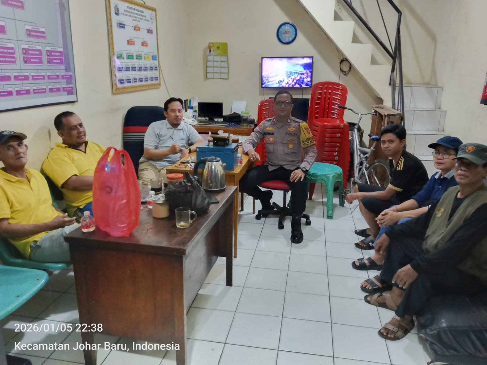 Jakarta Pusat – Upaya menjaga keamanan dan ketertiban masyarakat (kamtibmas) terus dilakukan jajaran Polsek Johar Baru hingga ke tingkat lingkungan. Pada Senin malam (5/1/2026) sekitar pukul 22.20 WIB, Bhabinkamtibmas Kelurahan Kampung Rawa, Aiptu Ikhwan, melaksanakan patroli wilayah sekaligus sambang ke Pos Satkamling RW 05 yang berlokasi di Jl. Rawa Selatan 2 RT 14 RW 05, Kelurahan Kampung Rawa, Kecamatan Johar Baru, Jakarta Pusat.
