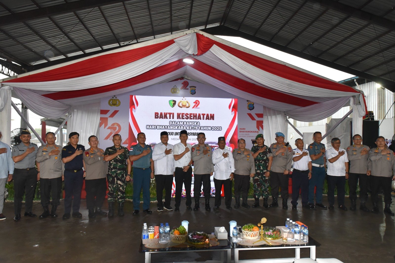 refubliknews.com, || TNI AL, Belawan,- Komandan Pangkalan Utama TNI Angkatan Laut I (Danlantamal I) Brigjen TNI (Mar) Jasiman Purba, S.E., CHRMP., diwakili Dansatrol Lantamal I Letkol Laut (P) Valentino Pasalbessy, SM., M.Tr. Opsla., CHRMP., menghadiri acara Bakti Kesehatan dalam rangka Hari Bhayangkara Ke-79 Tahun 2025, bertempat di Gudang PT. BSA Pelabuhan Perikanan Gabion Belawan, Sumatera Utara, Senin (16/6/2025).