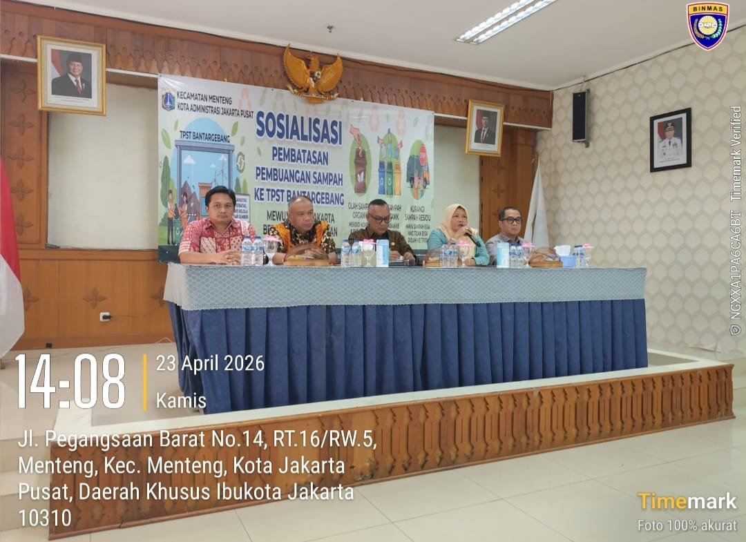 Jakarta Pusat – Upaya serius mewujudkan ibu kota yang bersih dan berkelanjutan terus digencarkan. Bhabinkamtibmas Kelurahan Kebon Sirih Aiptu Ujang Rusman, Bhabinkamtibmas Cikini Aiptu Tafsipul Subhani, serta Bhabinkamtibmas Gondangdia Aiptu Kamidi menghadiri kegiatan sosialisasi pembatasan pembuangan sampah ke TPST Bantar Gebang yang digelar di Aula Lantai 3 Kantor Kecamatan Menteng, Jalan Pegangsaan Barat No. 14, Menteng, Jakarta Pusat. Kamis (23/4/2026)