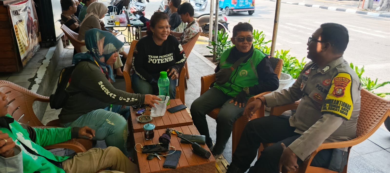 Dalam kegiatan itu, Brigpol Witno disambut hangat oleh sejumlah pengemudi Ojol, di antaranya Bp. Tomy, Bp. Rizky, Bp. Husen, serta Ibu Dini. Pertemuan berlangsung akrab, sambil berdialog tentang situasi kamtibmas di wilayah serta mendengarkan saran dan masukan dari para pengemudi.