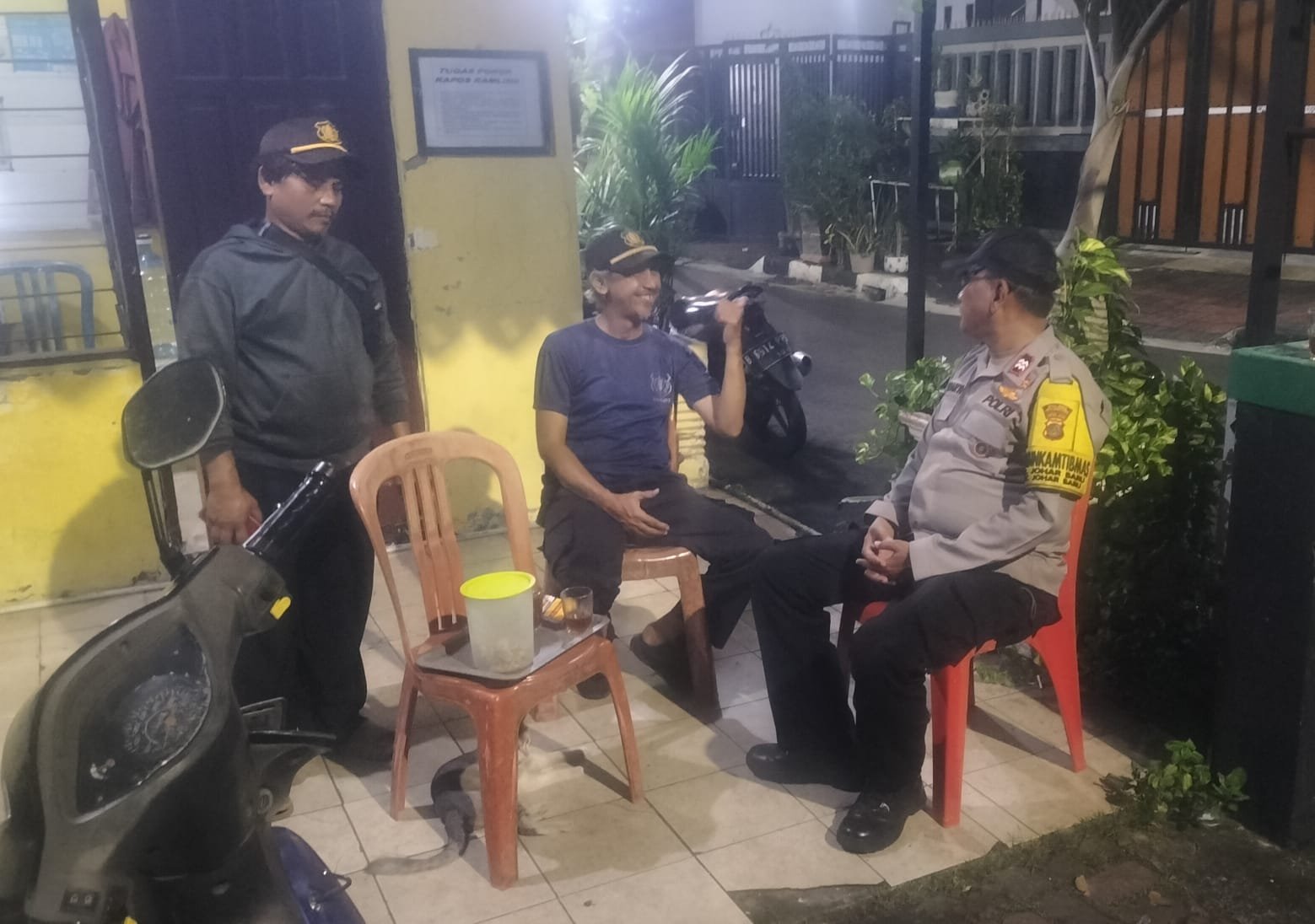 Kegiatan tersebut berlangsung di Poskamling RW 09, Jalan Johar Baru I, di mana Aiptu Sunarto bertemu dan berdialog langsung dengan para petugas keamanan lingkungan, yakni Bapak Yuswanto dan Bapak Sadar, selaku awak poskamling yang aktif menjaga wilayah pada malam hari.