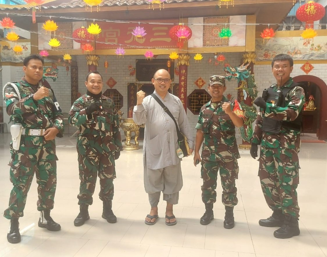 Dibawah pimpinan Batisiaplat Kodim 0502/JU Peltu Darto, satu regu patroli bermotor menyasar beberapa vihara dan tempat yang akan dijadikan pusat perayaan di Jakarta Utara, Sabtu (21/1/2023).