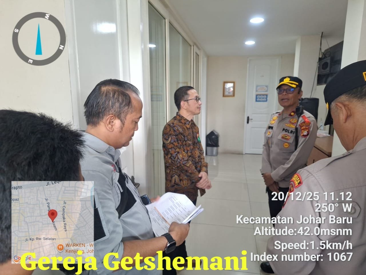 Sementara itu, Kapolsek Johar Baru Kompol Saiful Anwar menjelaskan bahwa pengecekan dilakukan secara menyeluruh, mulai dari kesiapan personel, pengaturan lalu lintas, hingga koordinasi teknis dengan pengurus gereja. “Kami berkoordinasi langsung dengan pengurus gereja untuk mengetahui jadwal ibadah dan kebutuhan pengamanan. Beberapa gereja akan melaksanakan misa pada hari ini, seperti Gereja Methodis pukul 18.00 WIB dan Gereja Getsemani pukul 17.00 WIB, sehingga kami pastikan pengamanan siap,” kata Saiful.