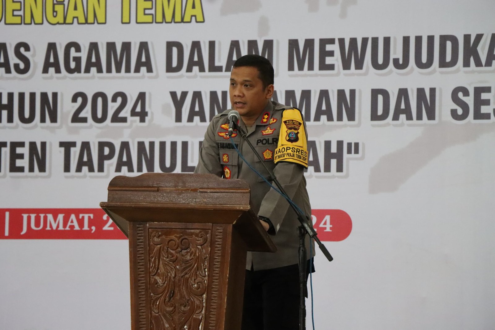 Kegiatan ini dipimpin langsung Kapolres Tapanuli Tengah AKBP Basa Emden Banjarnahor, SIK, MH dengan mengangkat tema “Peran Tokoh Lintas Agama dalam Mewujudkan Pilkada Serentak Tahun 2024 yang Aman dan Sejuk di Wilayah Kabupaten Tapanuli Tengah.”