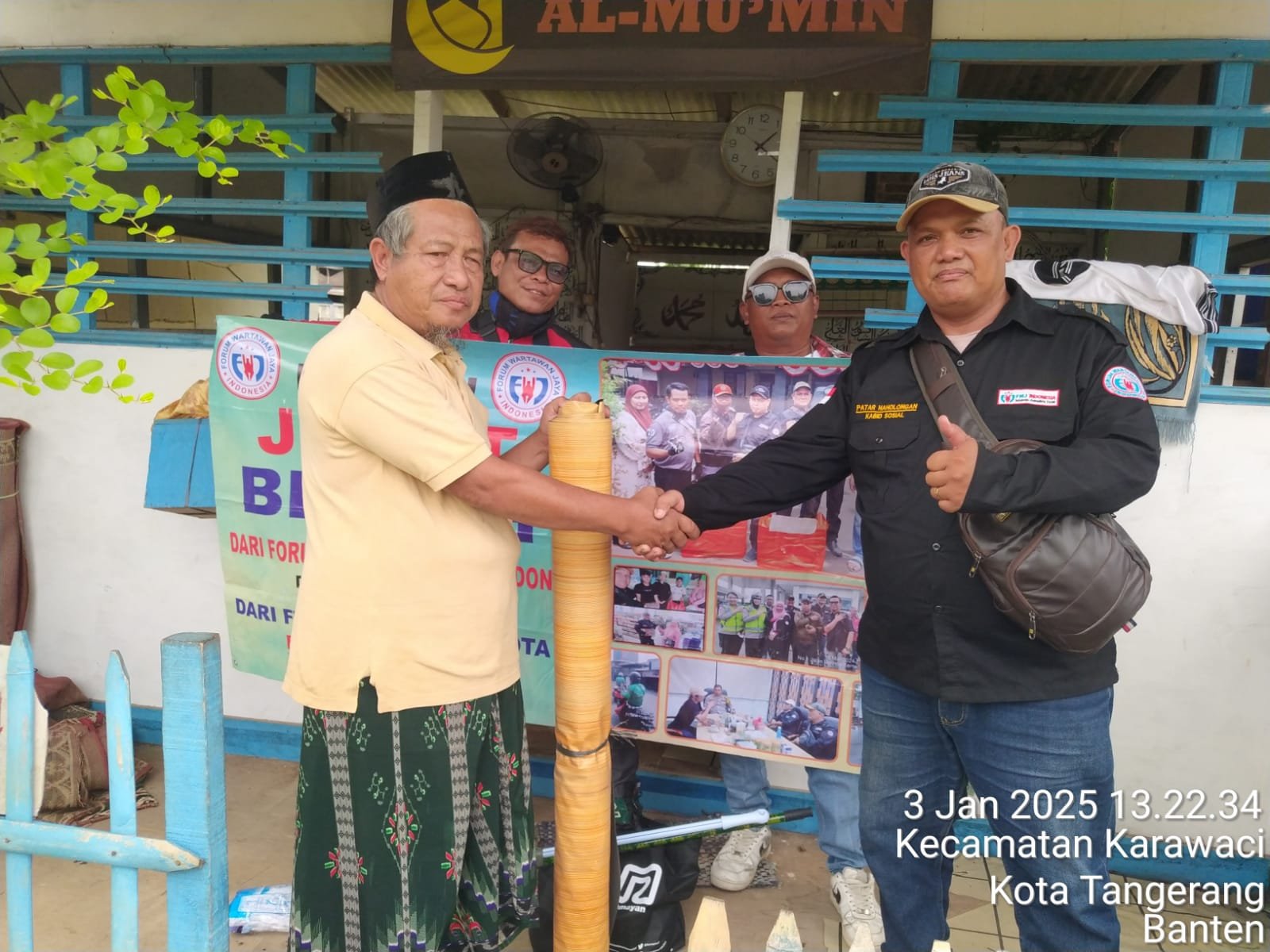 Seperti yang di lakukan FWJI Tangkot Jum’at ini membagikan peralatan perlengkapan musholah Nurul Iman di salah satu Musholah yang berada di kota Tangerang.