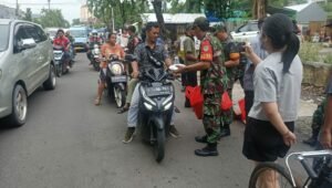 Kegiatan di pimpin langsung oleh Danramil 02/TB Mayor inf Muhlisin bersama anggota Babinsa dengan membagikan makanan secara gratis kepada warga yang melintas