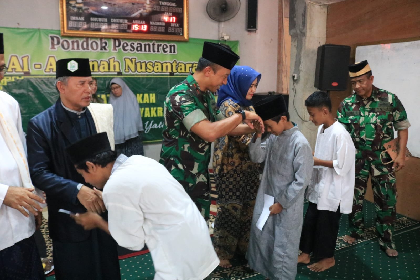 Korem 052 – Tangerang.Dalam upaya membantu kesulitan Masyarakat di wilayah bianaanya, Danrem 052/Wkr, Brigjen TNI Putranto Gatot SH,S.Sos.M.M. didampingi Ibu Ketua Persit KCK Koorcab Rem 052 PD Jaya, Ny Henny Putranto Gatot, secara rutin terus memberikan bantuan kepada yayasan , pondok pesantren dan Asrama Yatim Piatu yang kali ini memberikan bantuan dan santunan untuk Panti Asuhan Yatim dan Dhuafa Al-Amanah Nusantara yang berlokasi di Kel. Jombang, Kec. Ciputat Tangsel.Jumat (01/09/2023)