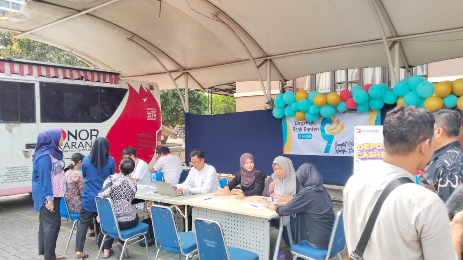 refubliknews.com.Tanggerang || Bank Banten Kantor Cabang Pembantu (KCP) Ciledug Tangerang Kota bersama Palang Merah Indonesia (PMI) Kota Tangerang, menggelar kegiatan Bakti Sosial Donor Darah di Samsat Ciledug dalam rangka menyambut Hari Ulang Tahun (HUT) PT. Bank Pembangunan Daerah Banten (Perseroda) Tbk., yang ke-9 pada 29 Juli 2025 mendatang.