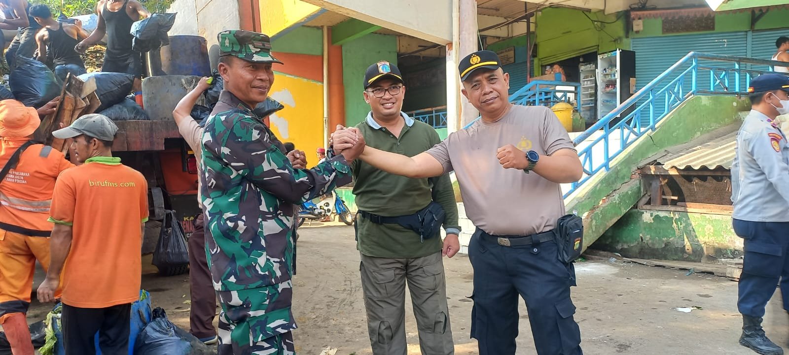 Kegiatan ini kita laksanakan bersama dengan unsur kelurahan Jembatan lima, Koramil, Polsek, satpol PP, Dishub, Damkar dan Pramuka di beberapa titik lokasi di wilayah pasar PD mitra jaya,”Jelas Danramil