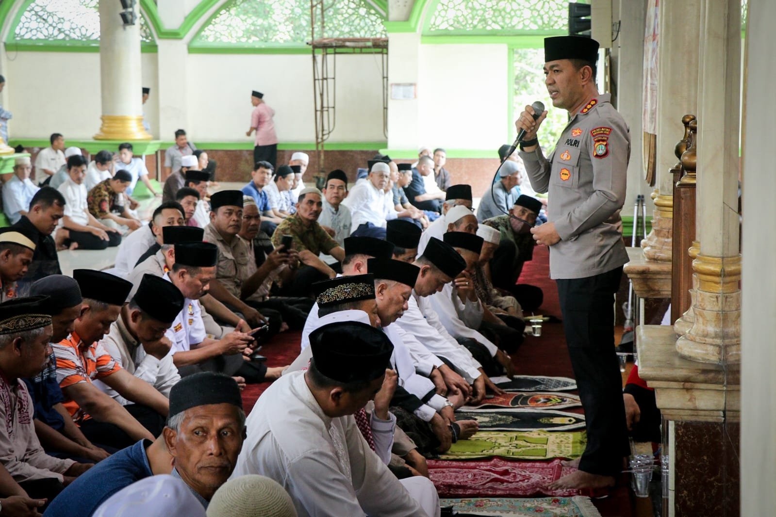 refubliknews.com,- Tangerang – Teriknya siang tak mengurangi khidmat suasana di Masjid Agung Al-Ijtihad Kota Tangerang. Sekitar 700 jamaah memadati saf-saf sholat Jumat, saat Kapolres Metro Tangerang Kota, Kombes Pol Dr. Raden Muhammad Jauhari, S.H., S.I.K., M.Si., hadir dalam program Jum’at Keliling (Jumling) dalam rangka Jum’at Curhat Polda Metro Jaya. Jumat (1/08/2025).