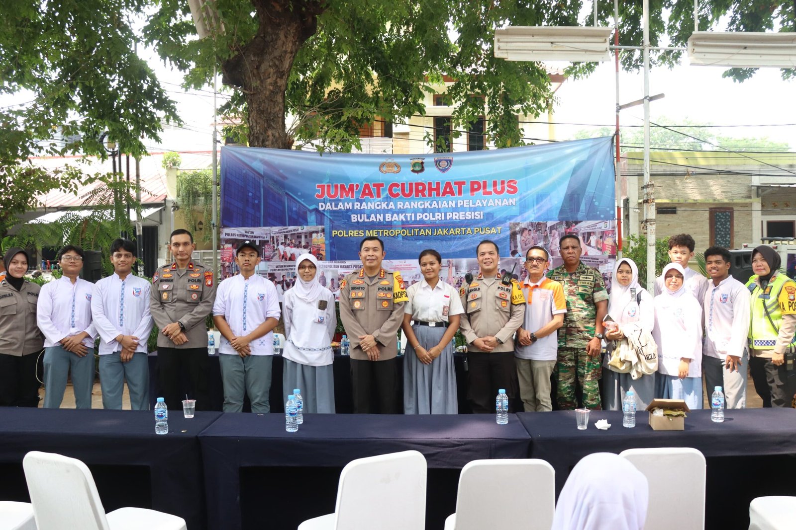 Giat Jumat Curhat Plus di hadiri oleh PJU Polrestro Jakpus, Wadanramil, Lurah Sumur Batu, Tokoh Agama, Tokoh Masyarakat, pelajar SMA, SMK, SMP serta warga sekitar di Taman Pirus.