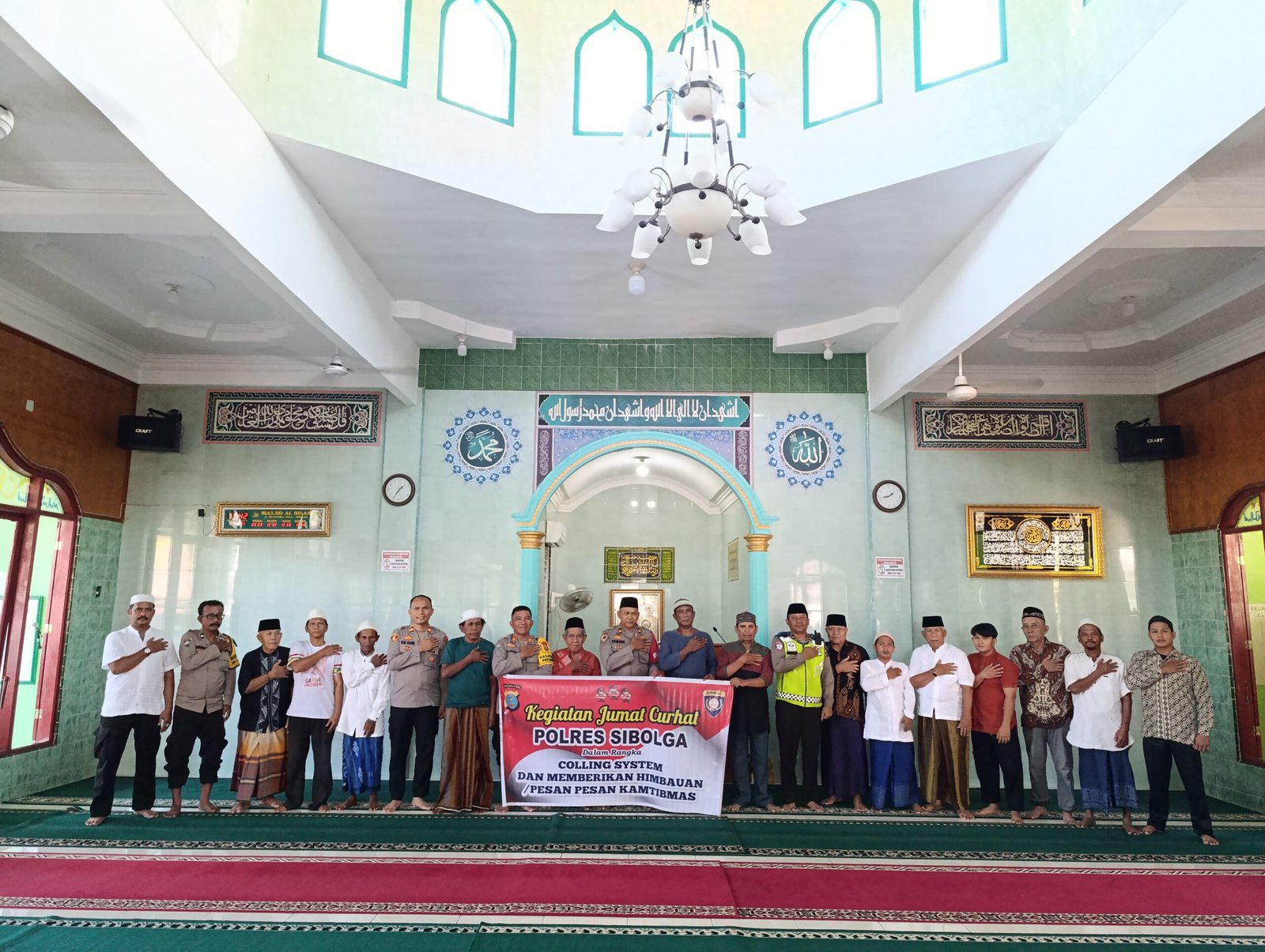 refubliknews.com,- SIBOLGA – Untuk lebih mendekatkan diri kepada Masyarakat dan mendengarkan keluhan mereka secara langsung, Kapolres Sibolga AKBP Eddy Inganta, SH, SIK, MH, yang diwakili Kasat Binmas Polres Sibolga AKP Martua Sinaga, Kasat Lantas Polres Sibolga AKP Pennedi Sihotang, Kasiwas Polres Sibolga IPTU Syahruddin, SH, MM dan Ps. Kapolsek Sibolga Selatan IPTU Pasma Pasaribu, SE, MM, mengadakan kegiatan “Jumat Curhat” di Masjid Al-Ihsan Ketapang Sibolga, Jalan Ketapang Kelurahan Simaremare Kecamatan Sibolga Utara Kota Sibolga, Jumat (18/07/2025).