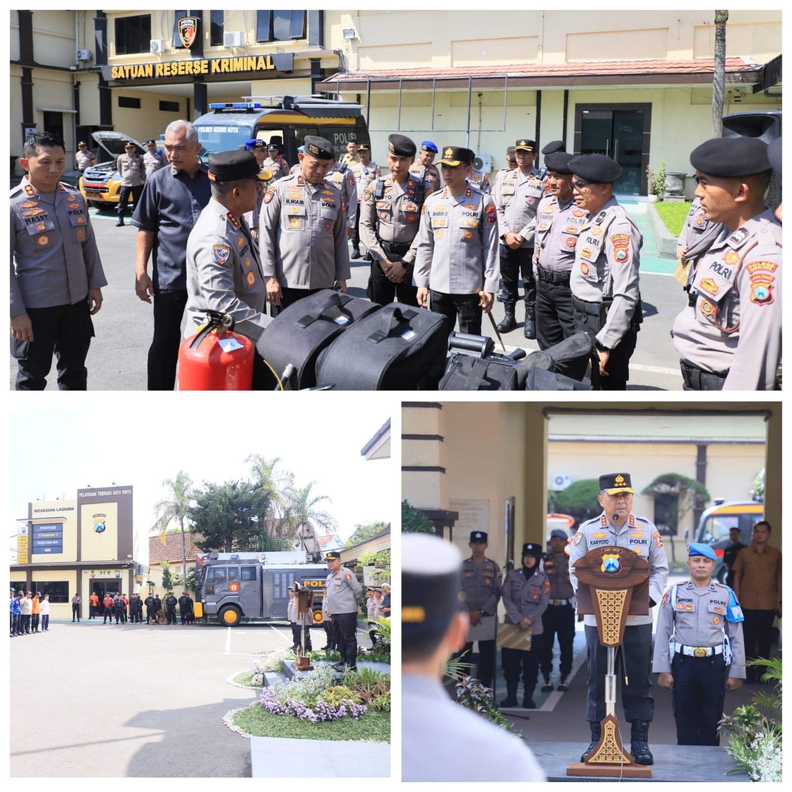 Dalam apel tersebut, Kapolres Kediri Kota AKBP Anggi Saputra Ibrahim bertindak sebagai Komandan Apel. Sementara jajaran pejabat utama Polri dan Polda Jawa Timur turut hadir mendampingi, di antaranya Dirbintibmas Korbinmas Brigjen Pol. Muhammad Rudy Syarifudin dan Dirsamapta Korsabhara Brigjen Pol. Dr. Mokhamad Ngajib.