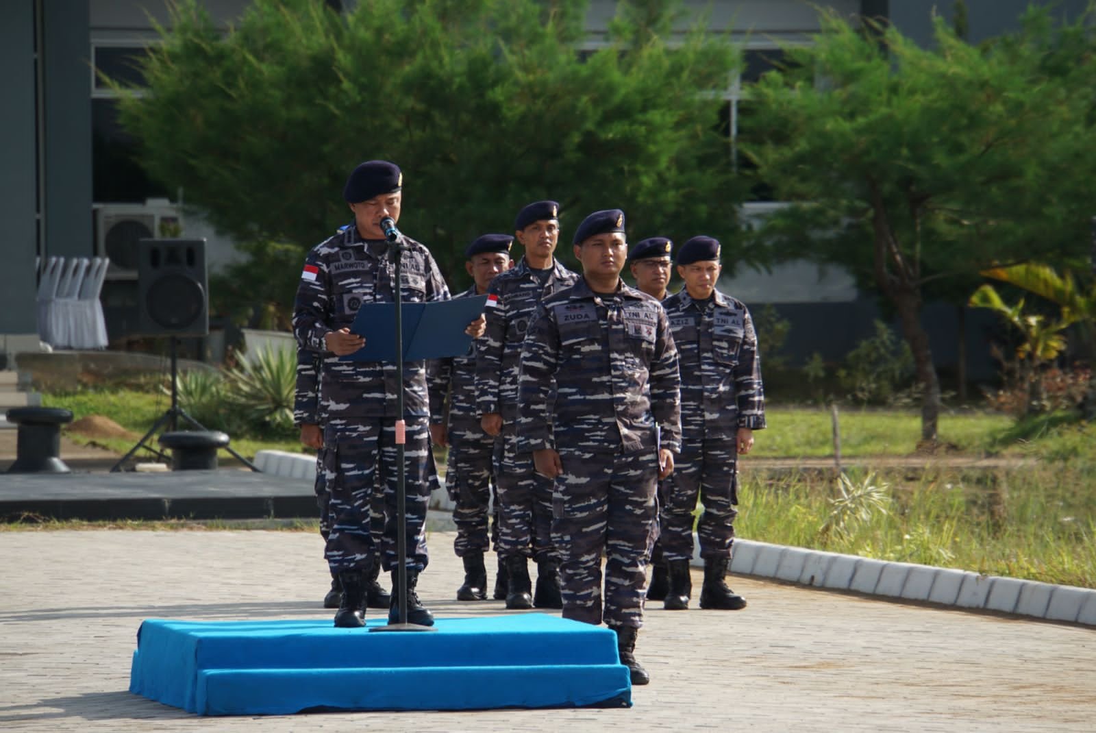 TNI AL, Lantamal XII,- Kakuwil Lantamal XII Kolonel Laut (S) Warwoto, S.E., M.Tr. Hanla., M.M., menjadi Inspektur Upacara pada Upacara Bendera Tujuh Belasan mewakili Danlantamal XII Pontianak Laksamana Pertama TNI Dr. Suharto, S.H., M.Si (Han) membacakan amanat Kepala Staf Angkatan Laut Muhammad Ali, S.E., M.M., M.Tr.Opsla., yang diikuti seluruh Prajurit dan PNS di Lapangan Apel Mako Lantamal XII, Jalan Raya Wajok Hilir KM 17, Kabupaten Mempawah, Provinsi Kalimantan Barat, Jumat (17/2/2023).