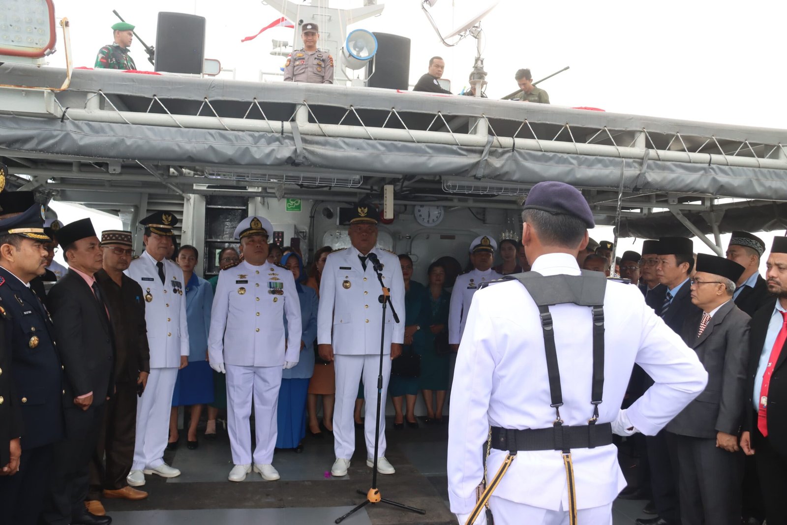 refubliknews.com, – TNI AL, Nias,- Pangkalan TNI AL Nias mendukung kegiatan Upacara Tabur Bunga dilaksanakan diatas KAL Hinako I-2-19 di Perairan Lahewa yang dilaksanakan oleh Pemkab Nias Utara, dan bertindak sebagai Inspektur Upacara Bupati Kabupaten Nias Utara Amizaro Waruwu, Jumat (16/8/2024).