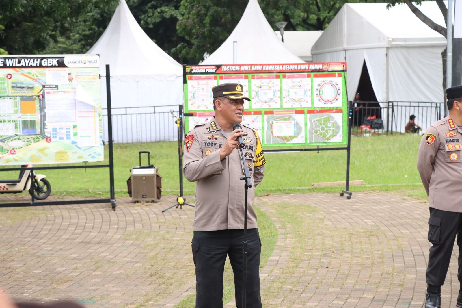 Lanjut Kombes Pol Tory Kristanto, jaga kerapihan dan sikap tampang pelaksanaan pengamanan, karena disorot oleh massa sebanyak 140.000 orang lebih. Bilamana terjadi sesuatu, kita sudah sediakan posko silahkan para pandal laporkan ke posko yang telah disediakan.