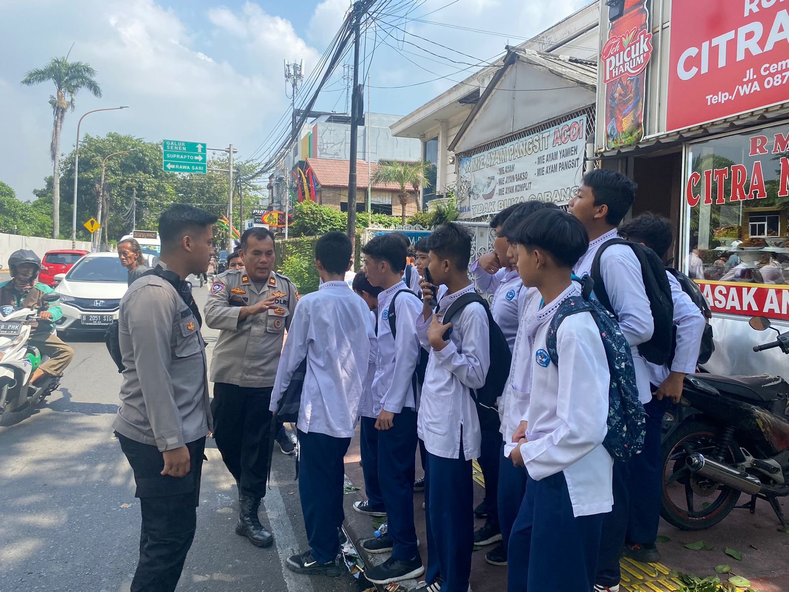 Dalam kegiatan patroli tersebut selain memberilan himbauan kepada para pelajar juga melakukan peneriksaan kepada para pelajar sebagai upaya antisipasi agar para pelajar tidak ada yang membawa senjata tajam dan barang barang terlarang lainnya.