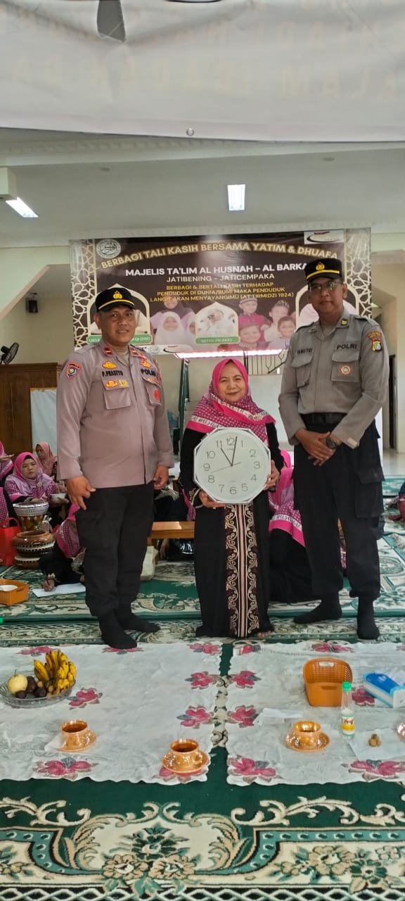 Iptu Yanu Tri selaku Kanit Binmas Polsek Pondok Gede memimpin langsung kegiatan ini, didampingi oleh Ipda Pardi Prasetyo (Panit Binmas) dan Aiptu Heddy Panjaitan (Babinkamtibmas Jati Bening Baru). Acara yang dimulai pukul 10.00 WIB ini dihadiri oleh kelompok pengajian ibu-ibu yang dipimpin oleh Ustazah Siti Barkatullah.