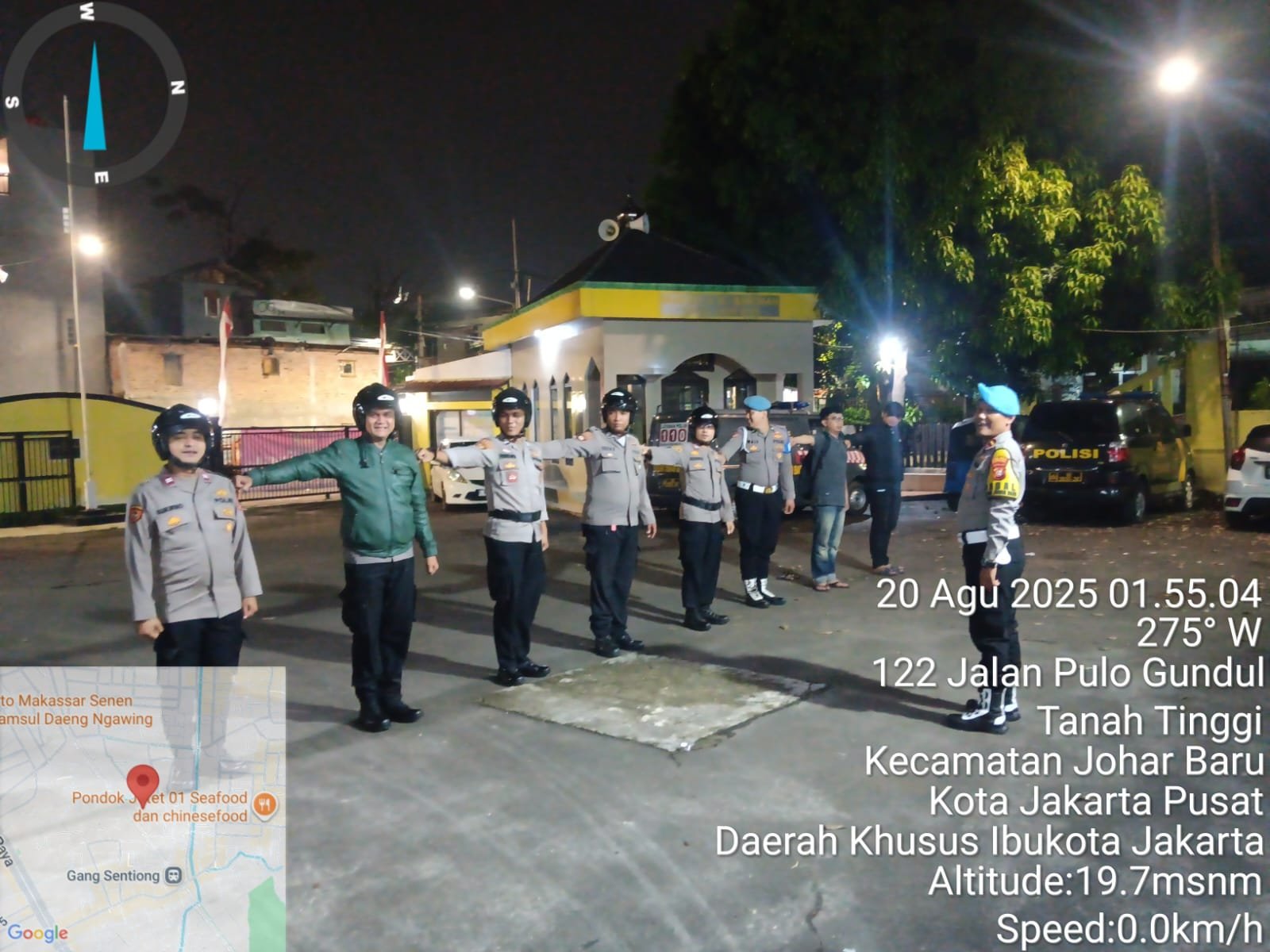 Selain itu, ia juga mengingatkan anggota untuk menjaga kesehatan, mengutamakan keselamatan, dan melaksanakan tugas dengan penuh tanggung jawab melalui sistem patroli berpasangan (buddy system). Usai apel, kegiatan dilanjutkan patroli keliling wilayah Johar Baru hingga menjelang pagi, dengan hasil situasi tetap aman dan kondusif.