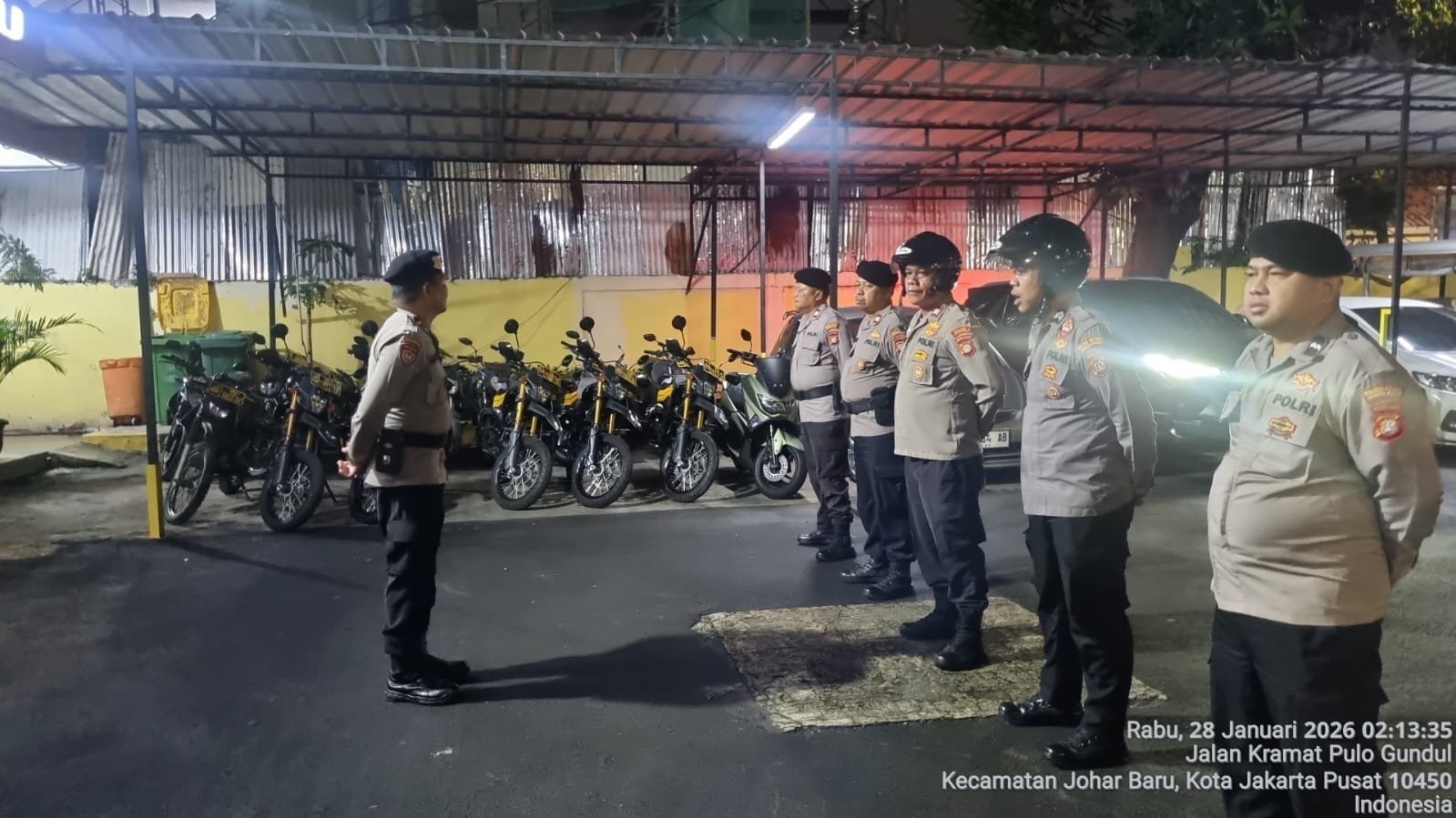 Jakarta Pusat — Guna mengantisipasi potensi gangguan keamanan dan ketertiban masyarakat (guantibmas) pada jam rawan, Polsek Johar Baru menggelar apel patroli cipta kondisi di halaman Mapolsek Johar Baru, Rabu (28/1/2026) dini hari.