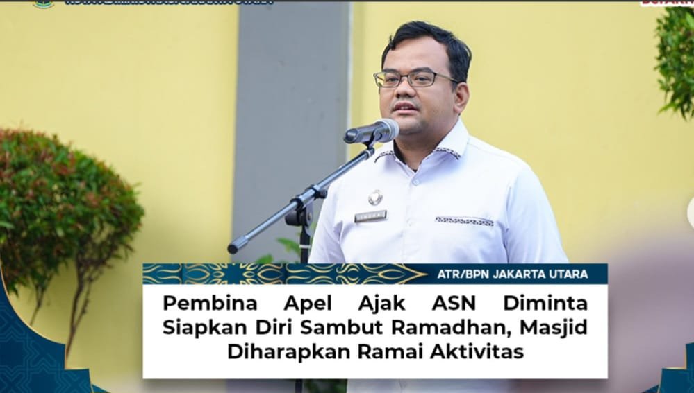 refubliknews.com,- Jakarta, – Bapak Indra Haditama, selaku Pembina Apel, mengajak seluruh Aparatur Sipil Negara (ASN) untuk mempersiapkan diri menyambut bulan suci Ramadhan. Ajakan ini disampaikan dalam apel pagi yang dihadiri oleh seluruh pegawai di lingkungan Kantor Pertanahan Kota Adsministrasi Jakarta Utara. Dalam arahannya, Bapak Indra menekankan pentingnya menjaga kesehatan fisik dan mental serta meningkatkan kualitas ibadah selama bulan Ramadhan.