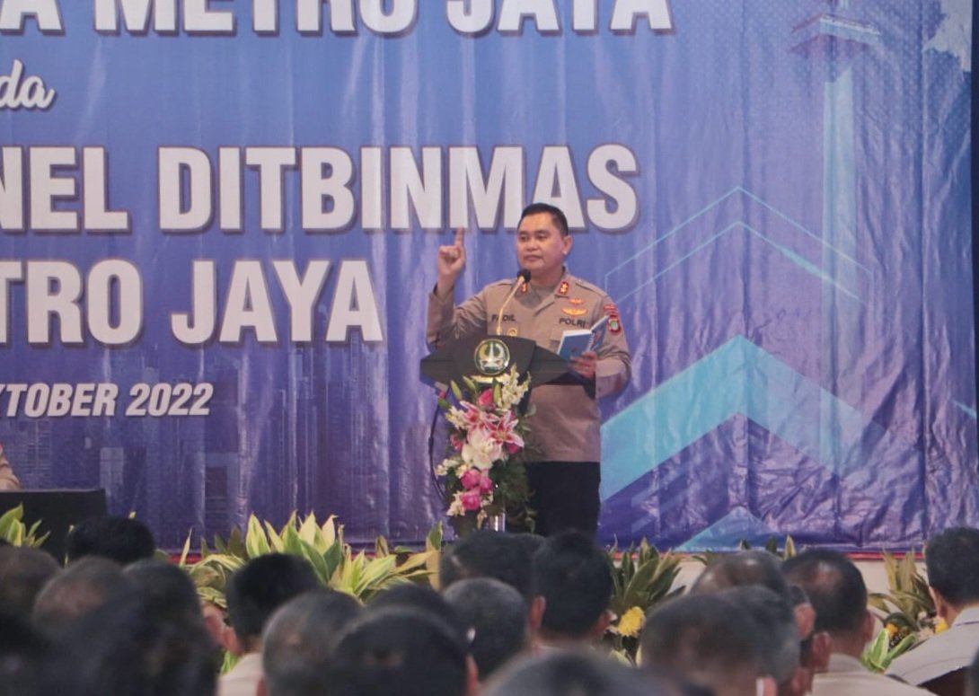 Jakarta- Kapolda Metro Jaya Irjen Pol. Dr. Mohammad Fadil Imran, M.Si. memberikan arahan kepada seluruh anggota satker Binmas Jajaran Polda Metro Jaya di Balai Pertemuan Metro Jaya (BPMJ), Sabtu (29/10/2022).