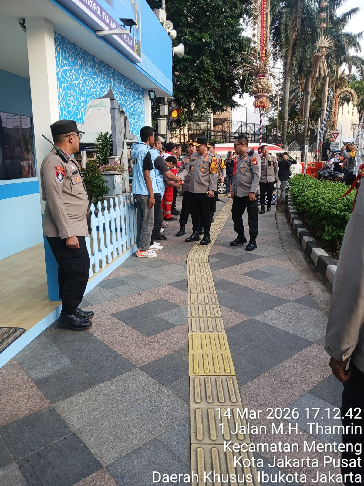 Jakarta Pusat – Dalam rangka memastikan kesiapan pengamanan menjelang arus mudik dan perayaan Hari Raya Idul Fitri, Kapolda Metro Jaya Irjen Pol. Asep Edi Suheri bersama Wakapolda Metro Jaya Brigjen Pol. Dekananto Eko Purwono melaksanakan kunjungan dan pengecekan langsung Pos Pengamanan (Pos Pam) Operasi Ketupat Jaya 2026 di kawasan Bundaran Hotel Indonesia (HI), Jalan MH Thamrin, Menteng, Jakarta Pusat. Sabtu (14/3/2026)