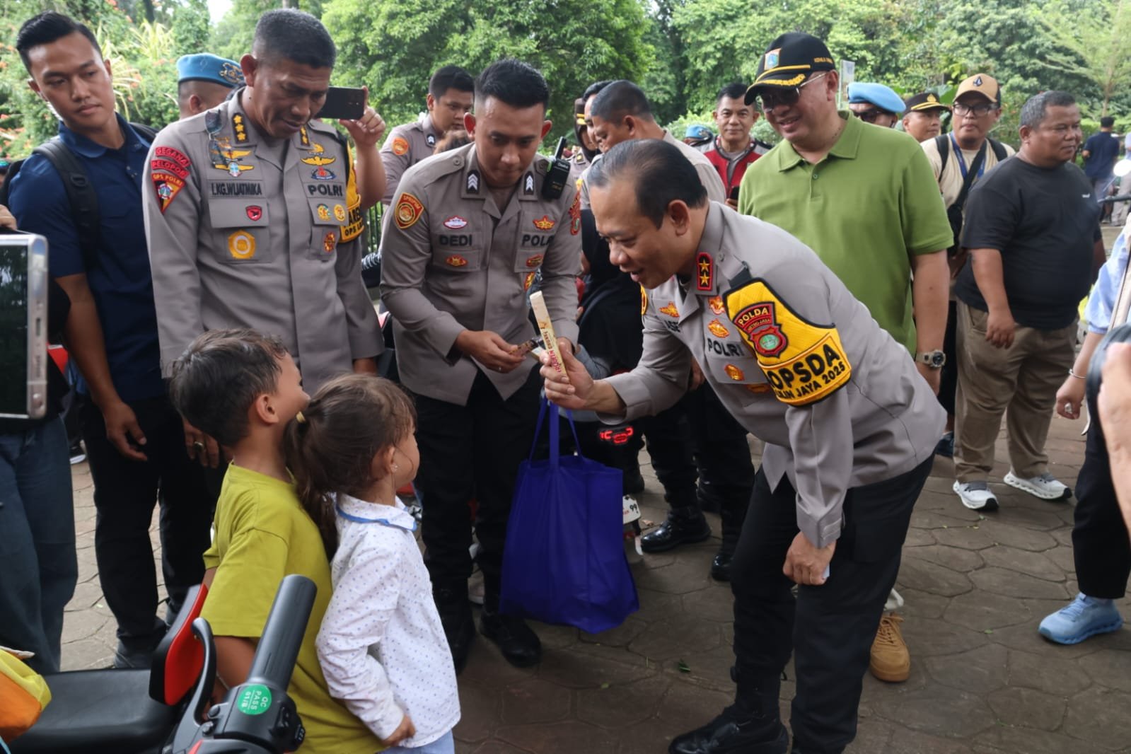 Salah satu interaksi terjadi saat Kapolda menyapa seorang anak bernama Ahmad Ali Ramadhan asal Panimbang, Banten. Ibu Ali menyampaikan bahwa putranya bercita-cita menjadi polisi.