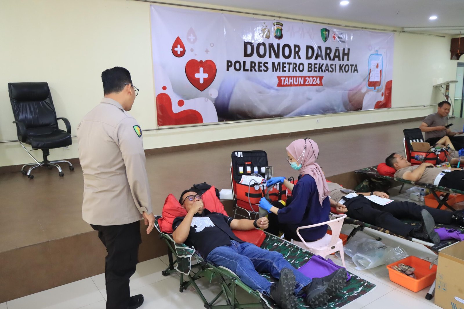 refubliknews.com, – Bekasi Kota,– Polres Metro Bekasi Kota kembali menyelenggarakan kegiatan donor darah rutin pada Rabu, 4 September 2024. Acara yang berlangsung dari pukul 08.00 WIB hingga selesai ini bertempat di Aula Lantai 7 Polres Metro Bekasi Kota.