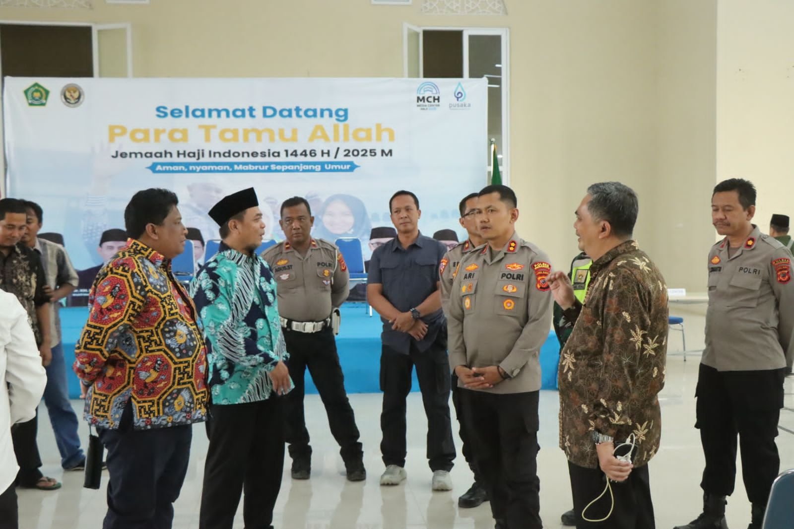 Pengecekan dilakukan bersama Wakil Ketua Panitia Penyelenggara Ibadah Haji (PPIH) Embarkasi, M. Ajie Abdul Latief, serta didampingi Kabag Ops Polres Indramayu Kompol Eko Susilo, S.H., M.H., Kapolsek Lohbener Kompol Ginting Sumantri, S.H., Kasi Humas AKP Tarno, S.H.