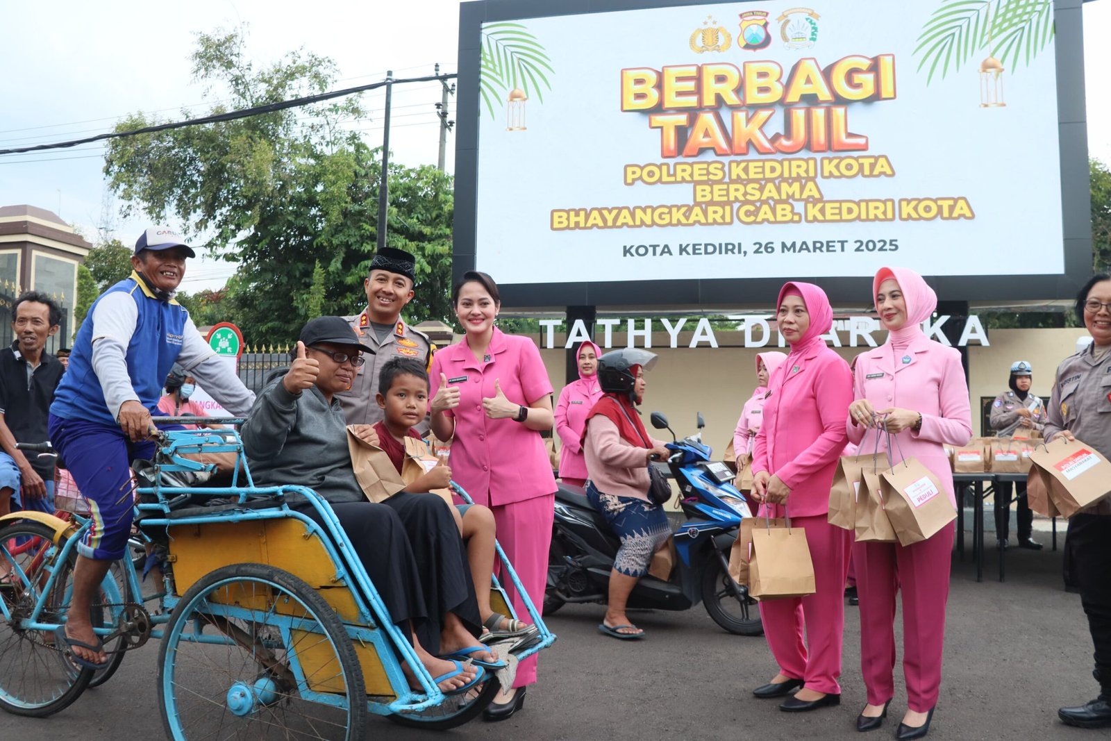 Kapolres Kediri Kota bersama Ketua Bhayangkari dan anggota Bhayangkari turun langsung membagikan takjil kepada para pengendara yang melintas. Kegiatan ini bertujuan untuk membantu masyarakat, khususnya umat Muslim, dalam menjalankan ibadah puasa dengan lebih mudah dan penuh kebahagiaan.