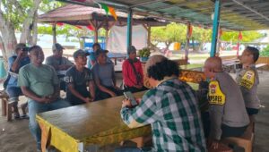 Jakarta – Kapolres Kepulauan Seribu, AKBP Jarot Sungkowo, S.H., S.I.K., bersama dengan Pejabat Utama Polres Kepulauan Seribu dan Bhabinkamtibmas, turut melaksanakan kegiatan Jumat Curhat di Pulau Pari, Kepulauan Seribu Selatan pada Jumat (08/12/2023). Giat ini dihadiri oleh sejumlah tokoh masyarakat, tokoh pemuda, dan Tour Guide/Pemandu Wisata Pulau Pari.