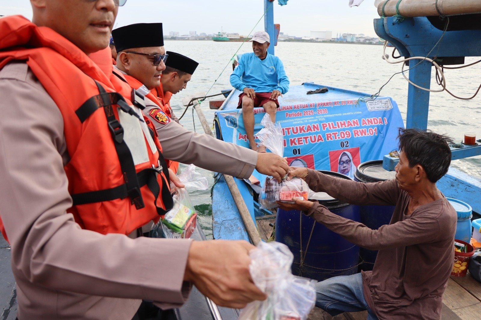 refubliknews.com, – Kepulauan Seribu – Dalam rangka Safari Ramadhan, Kapolres Kepulauan Seribu AKBP Ajie Lukman Hidayat, S.I.K., M.H., bersama Pejabat Utama (PJU) Polres Kepulauan Seribu melaksanakan kegiatan berbagi takjil kepada para nelayan di wilayah Kepulauan Seribu Selatan, Selasa (18/03/2025). Kegiatan ini merupakan bentuk kepedulian Polri terhadap masyarakat maritim, khususnya para nelayan yang sedang beraktivitas di perairan.