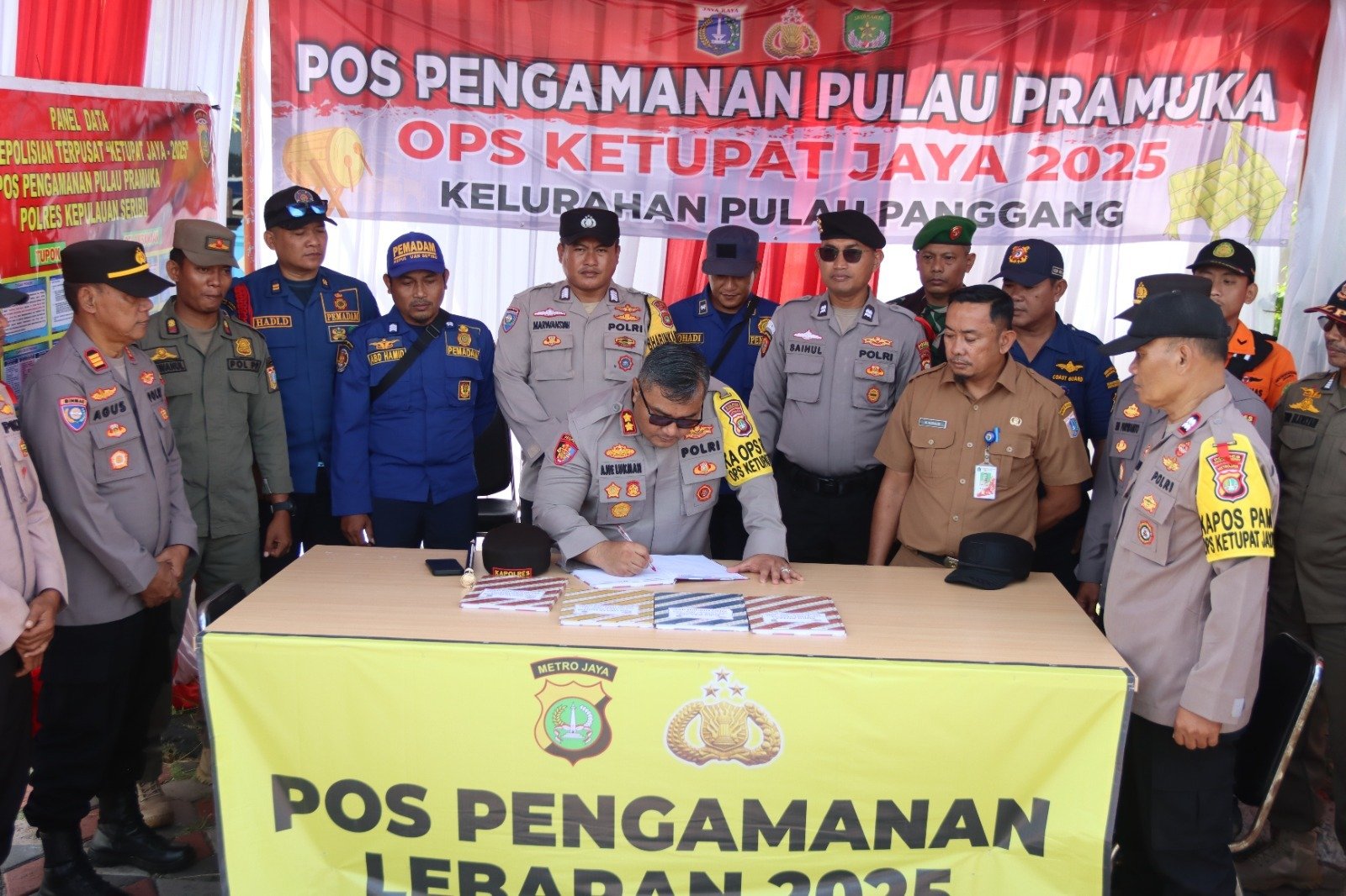 refubliknews.com,- Kepulauan Seribu – Kapolres Kepulauan Seribu AKBP Ajie Lukman Hidayat, S.I.K., M.H., bersama Pejabat Utama Polres Kepulauan Seribu melakukan pengecekan Pos Pengamanan (Pos Pam) Idul Fitri 2025 di wilayah Kepulauan Seribu, Selasa (25/03/2025).